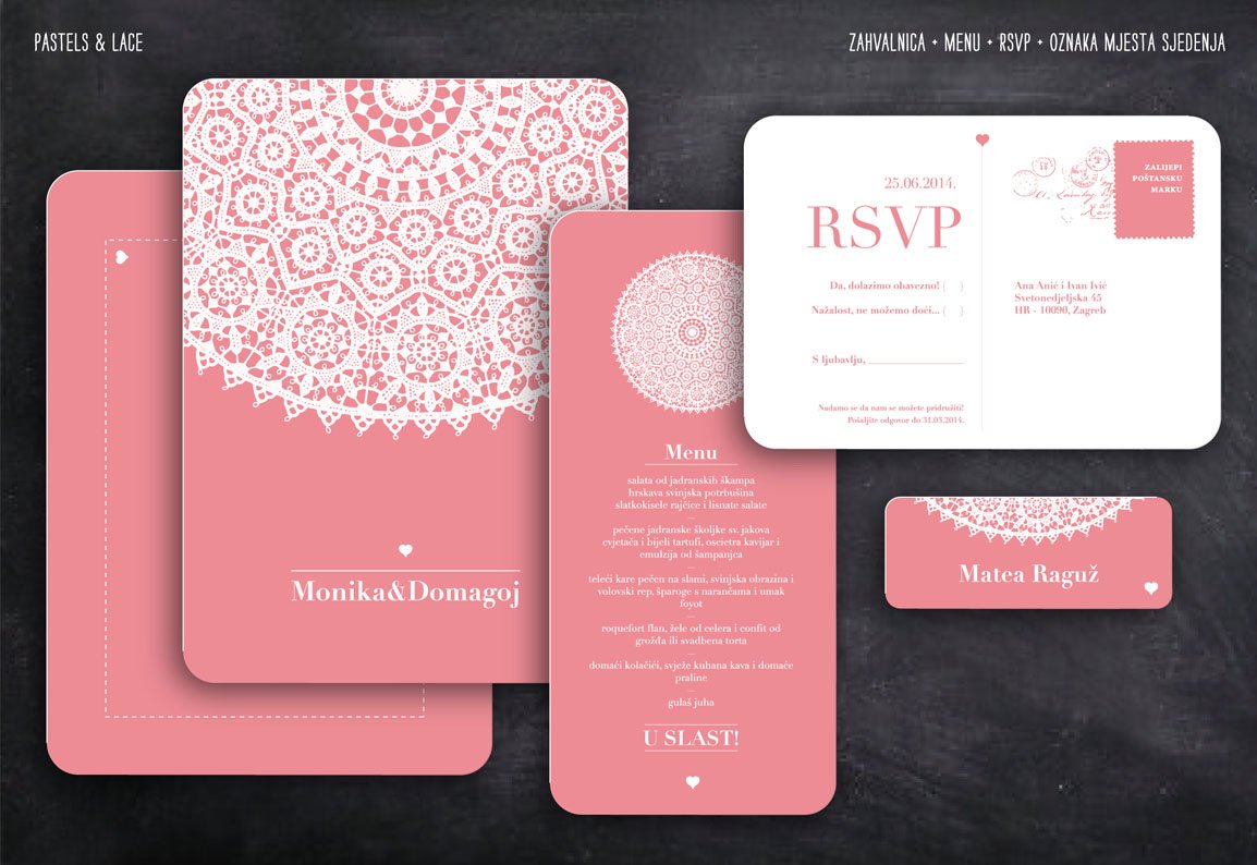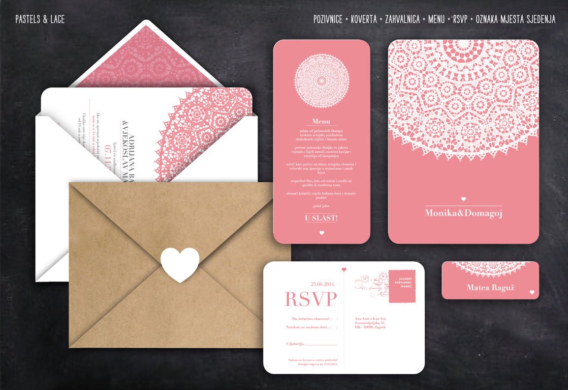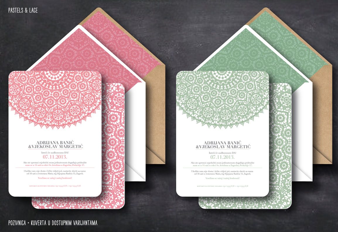 Prekrasna Paška čipka u dvije neodoljive pastelne nijanse. Pozivnica koja je i romantična i nježna i neformalna, i elegantna....