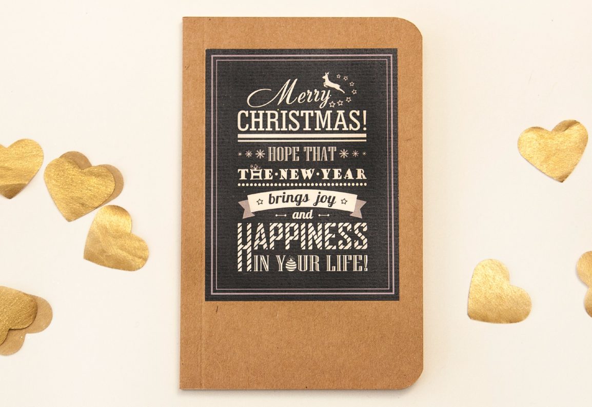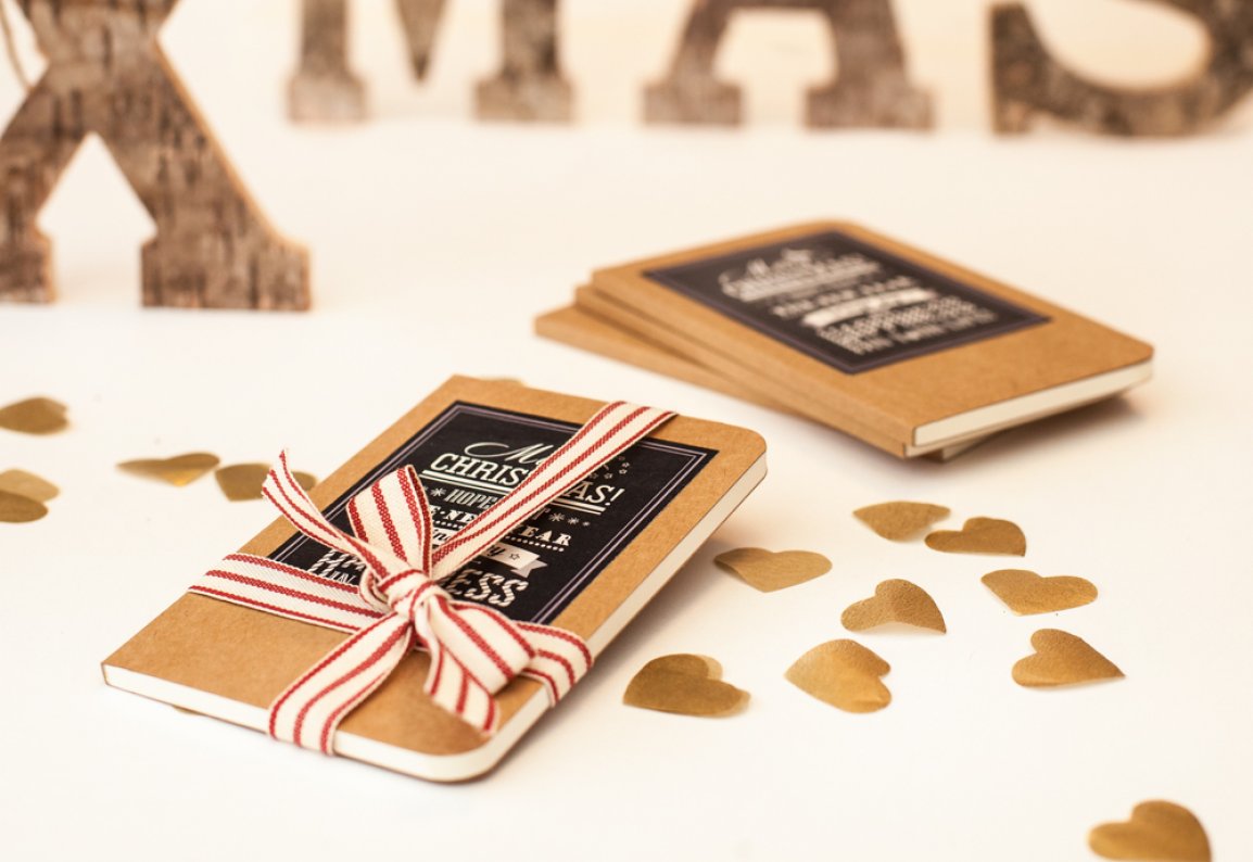Naš blokić dobio je svoje Božićno izdanje. Prekrasan tipografski dizajn s bijelim tekstom na crnoj podlozi savršeno se uklopio na prednju stranicu od smeđeg kraft papira. Dimenzija 9 x 14 cm, dovoljno je malen da stane u gotovo svaku torbicu ili džep.