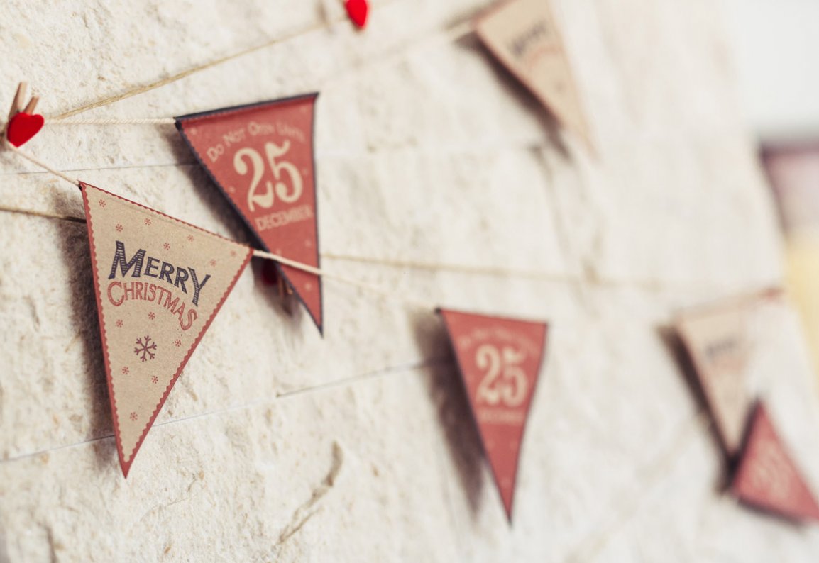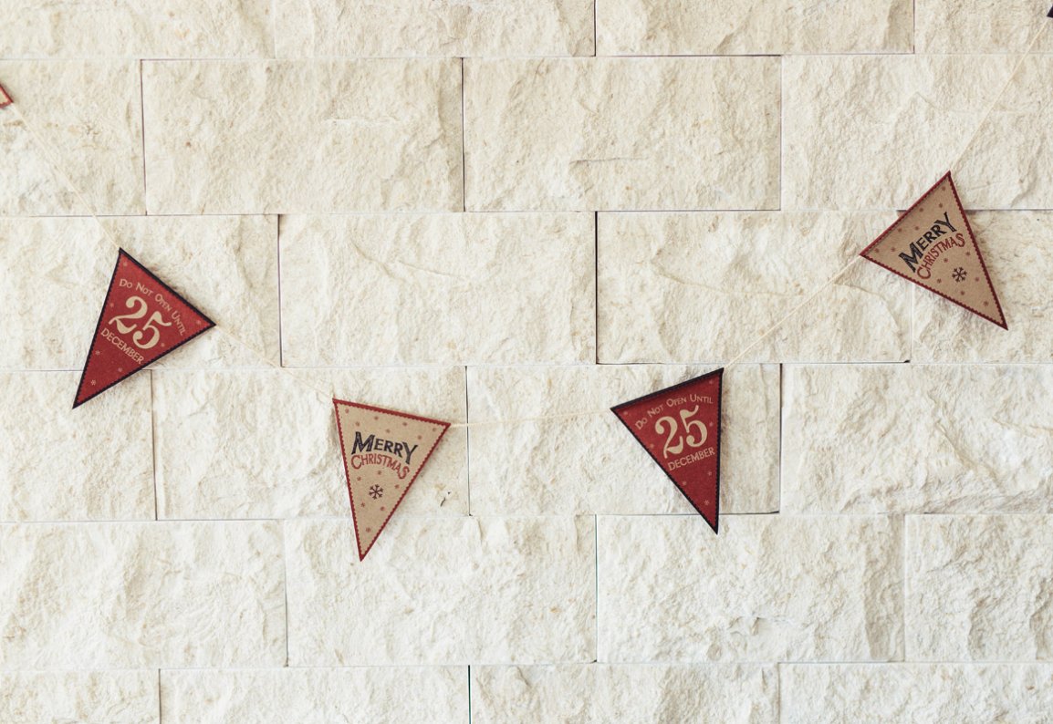 Preslatke retro zastavice od debelog recikliranog kartona s božićnim motivima i tekstom ''Do not open...'' Ukrasite, ured, stan, ili božićnu zabavu ovim divnim ukrasom koji će vam trajati godinama...