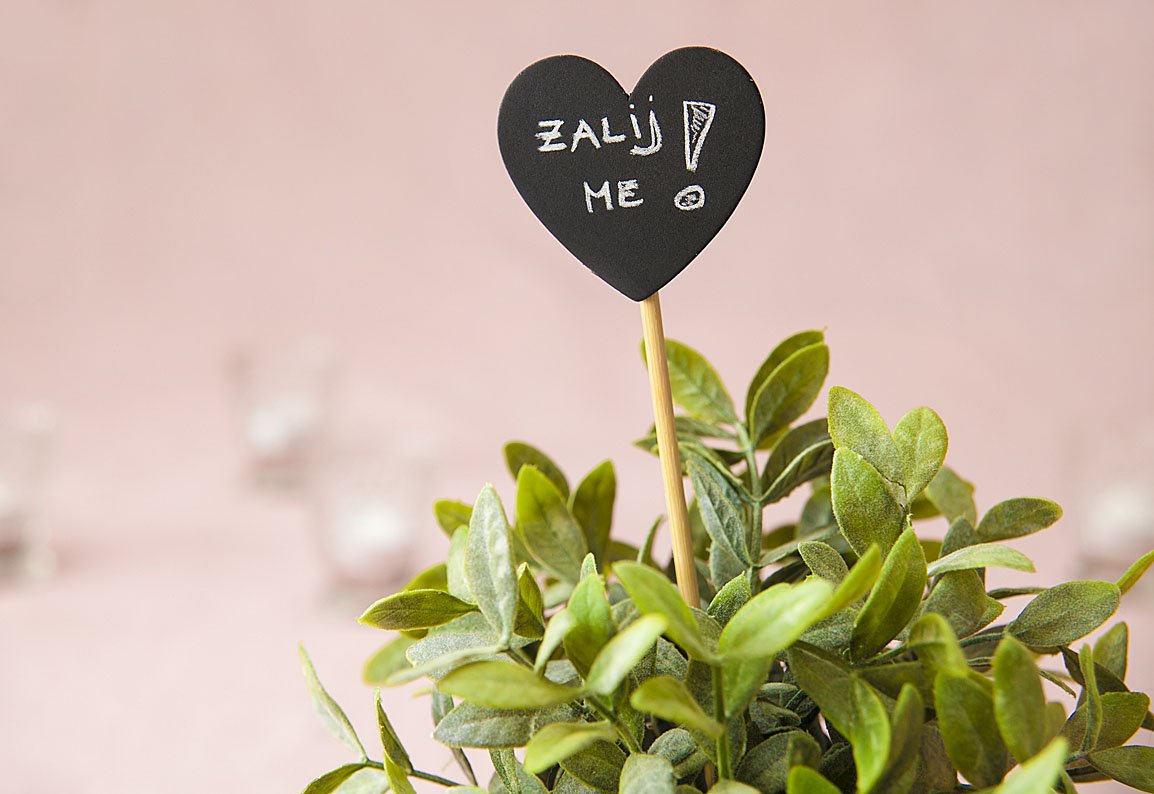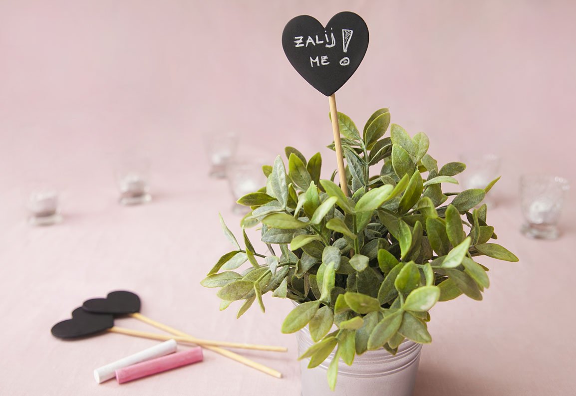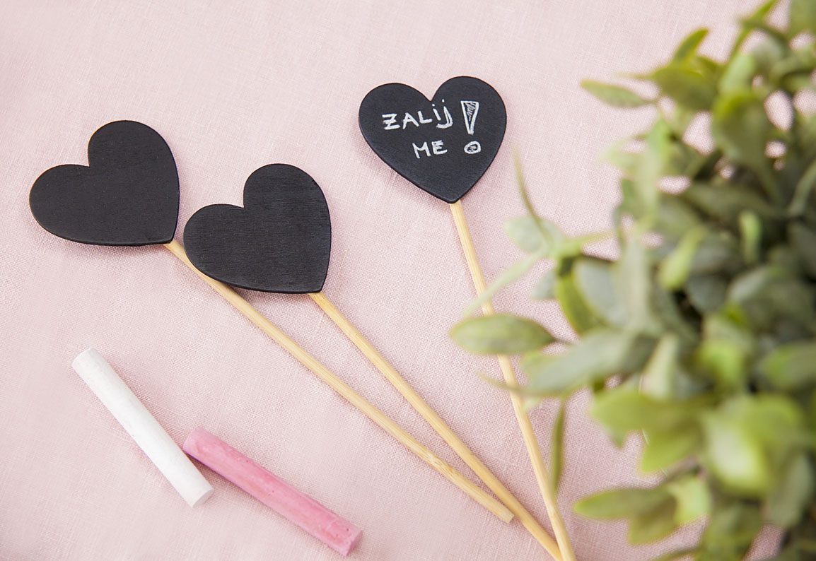 Chalkboard u obliku srca na drvenom štapiću - prekrasna rustikalna dekoracija koju možete koristiti na proslavama, vjenčanjima, rođendanima kao oznaku stola npr. utaknutu u teglicu sa cvijećem, ili za oznaku mjesta sjedenja, ali i za označavanje vašeg začinskog bilja i sl.. Jednostavno s kredom napišete što got, a upotrebiti ju možete nebrojeno puta – obrišite i pišite ponovno!