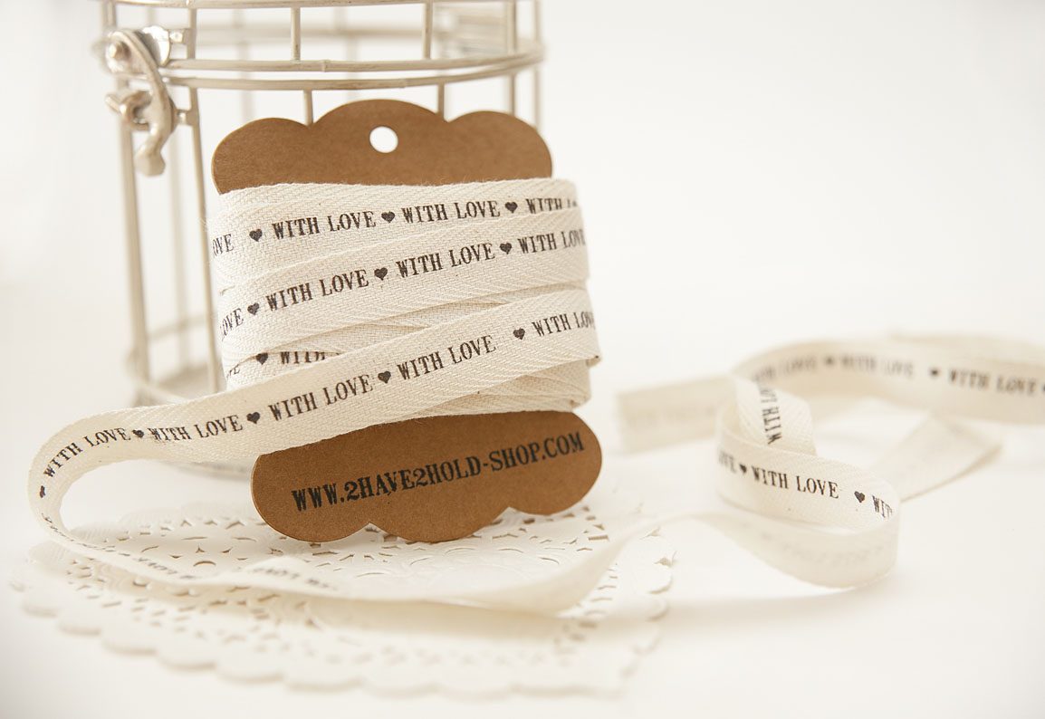 Ova ukrasna vrpca od čistog pamuka s jednostavnom porukom ''With love'' vašim poklonima, ukrasima, privjesnicama, kutijicama dati će poseban šarm. Prirodna, ekološki prihvatljiva i prekrasna vrpca koje je i sama za sebe već lijep znak pažnje, a može se koristiti i za razne DIY projekte.