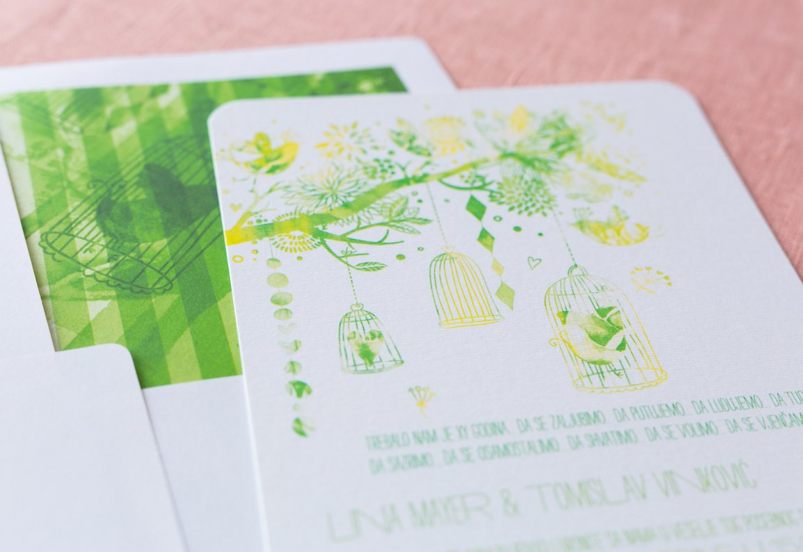 Za pozivnicu i prateće materijale odabrali smo luksuzan strukturirani papir od 350 grama proizveden po FCS standardu, vrhunski digitalni tisak te elegantno zaobljene rubove.
